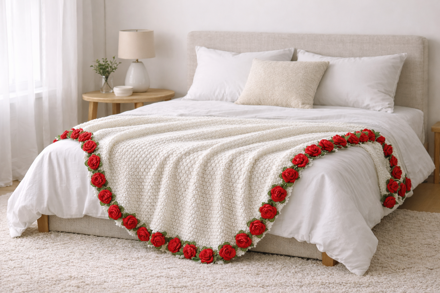 Le plaid Bouquet de Roses réunit confort et poésie : un plaid moelleux, un bouquet crocheté, et une ambiance chaleureuse qui transforme instantanément votre canapé ou votre chambre.